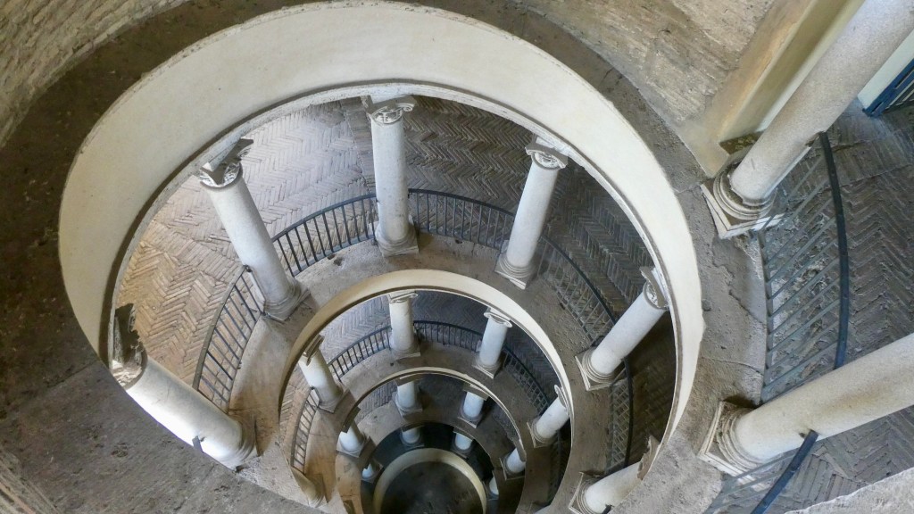 We went up the original Bramante circular staircase, built in 1505. This did not appear to be accessible to most guests. We had a nice view of Roma.