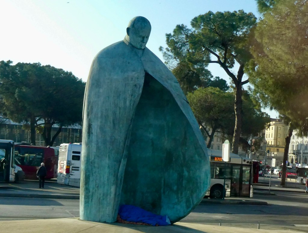 The sculpture, Angels Unawares, sits in St. Peter’s Square and was dedicated by Pope Frances in 2019 for the 105th World Day for Migrants and Refugees. The sculptor was Timothy Schmalz. It was very touching and thought provoking.