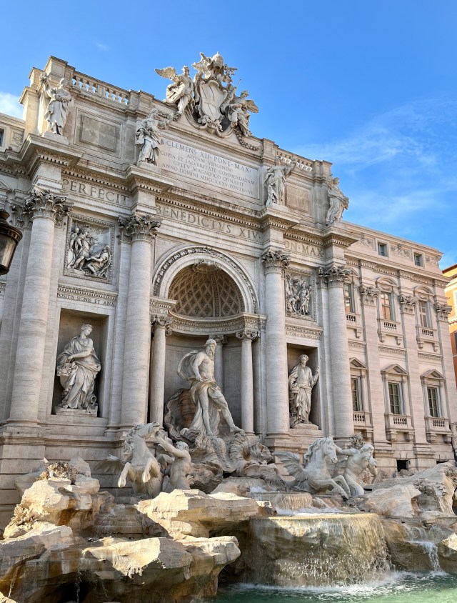A proper Trevi coin toss is done using your right hand to throw the coin over your left shoulder. Thrown coins are collected daily used for upkeep and charity. The reason to toss a coin is that doing so will bring you back to Roma!