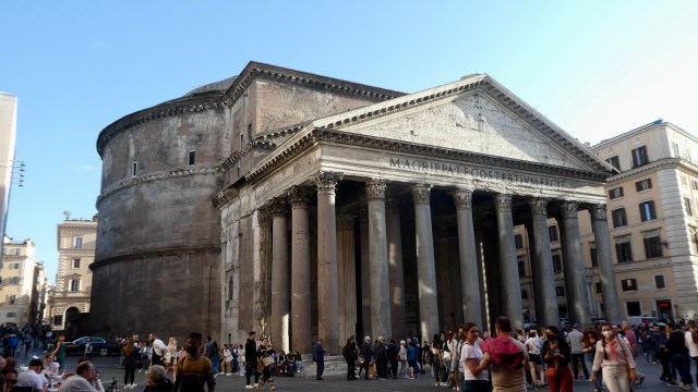 This is the Pantheon. Actually it is the third Pantheon, built on the same site as two earlier versions. The first was destroyed by fire in 80 AD and the second was struck by lightning in 110 AD and burned.