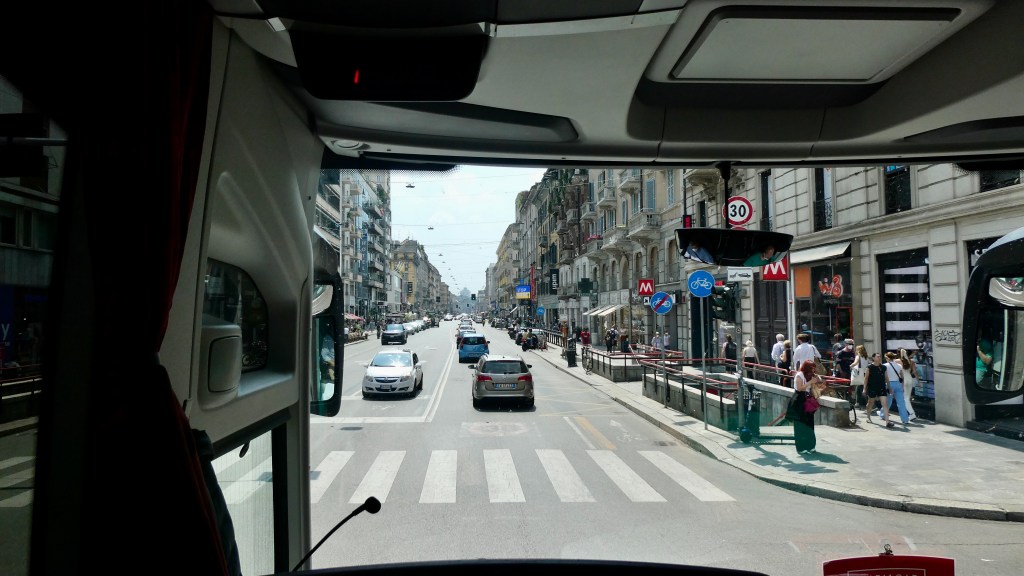 When we arrived at the bus that morning we found we had the best seats right behind the driver.  The tour company had a process of assigning rotating passenger seats for fairness.  We had the best seats once on our twelve day tour – this was our day! We enjoyed our ride and arrived in Verona.