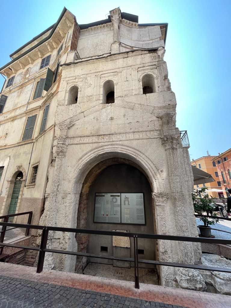 Verona was once a Roman City. The “Porta Leoni” gate was a main access route into Verona.  Built in the first century BC, the gate was renovated in the first century AD.  The remains of the gate had been known and were partially visible.  The gate became more visible during renovations in 1958-59.