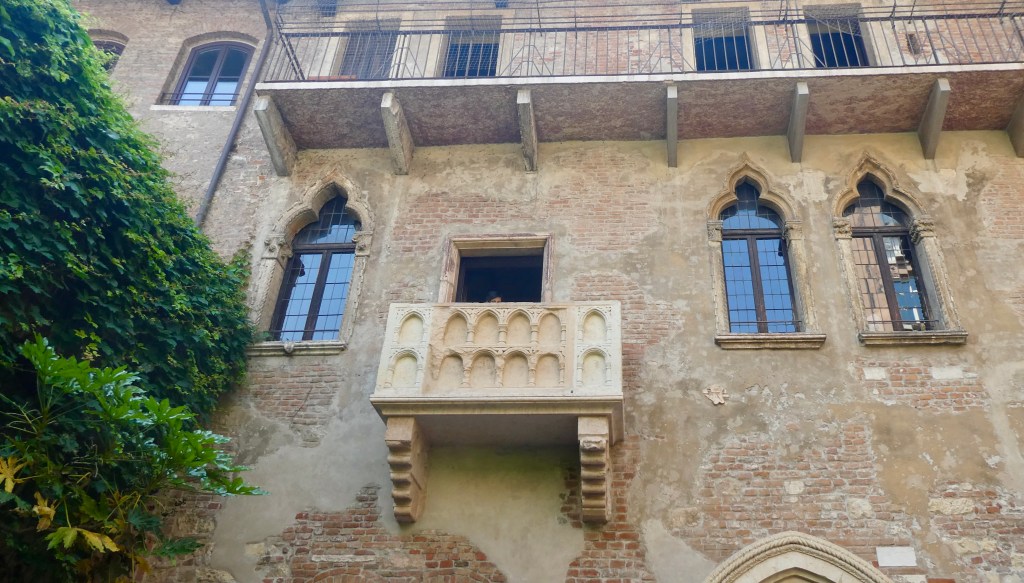 Like almost every other tourist we stopped to see Juliet’s balcony – only there isn’t really a balcony in Shakespeare’s play.   Nevertheless, we saw it and were glad for it.