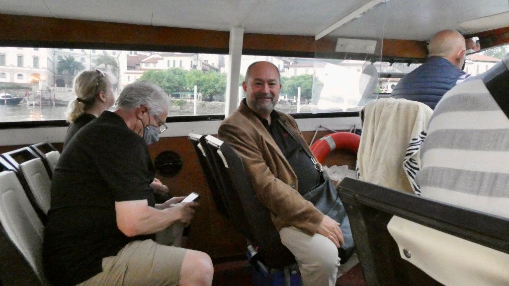 When we looked in the toilet (they don’t call them restrooms in Italy) we found a large space with a sink, toilet, bidet AND the smallest shower we’ve ever seen.   Even RV showers are larger than this one. Interesting, but we were off for a boat ride on Lake Maggiore!