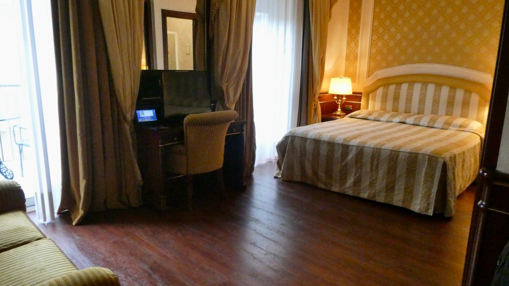 When we checked into our Stresa hotel on Lake Maggiore, we found an elegant, spacious room with two balconies.