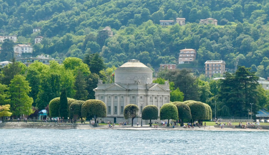 Returning to the town of Como, we could see the Tempio Voltiano.  It was built in 1927 to honor Alessandro Volta, the inventor of the electrical battery. The museum inside holds scientific instruments and that first electric battery.