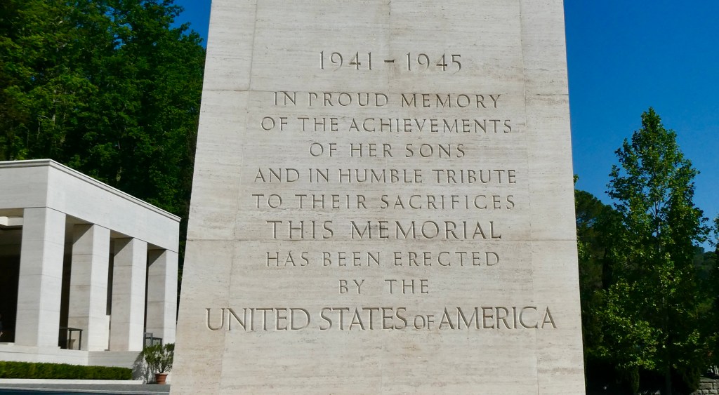 Our first stop on the last day of our Tour of Italy was at the Florence American Cemetery Memorial.  This is one of two American Cemeteries in Italy. The other is near Rome.