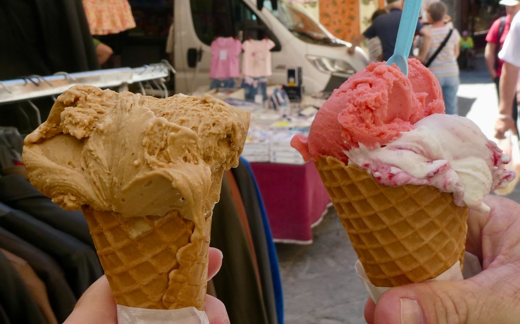 We had one last piece of “take away” Margherita Pizza and one more gelato from the best rated gelato shop in Tuscany – or maybe the world!