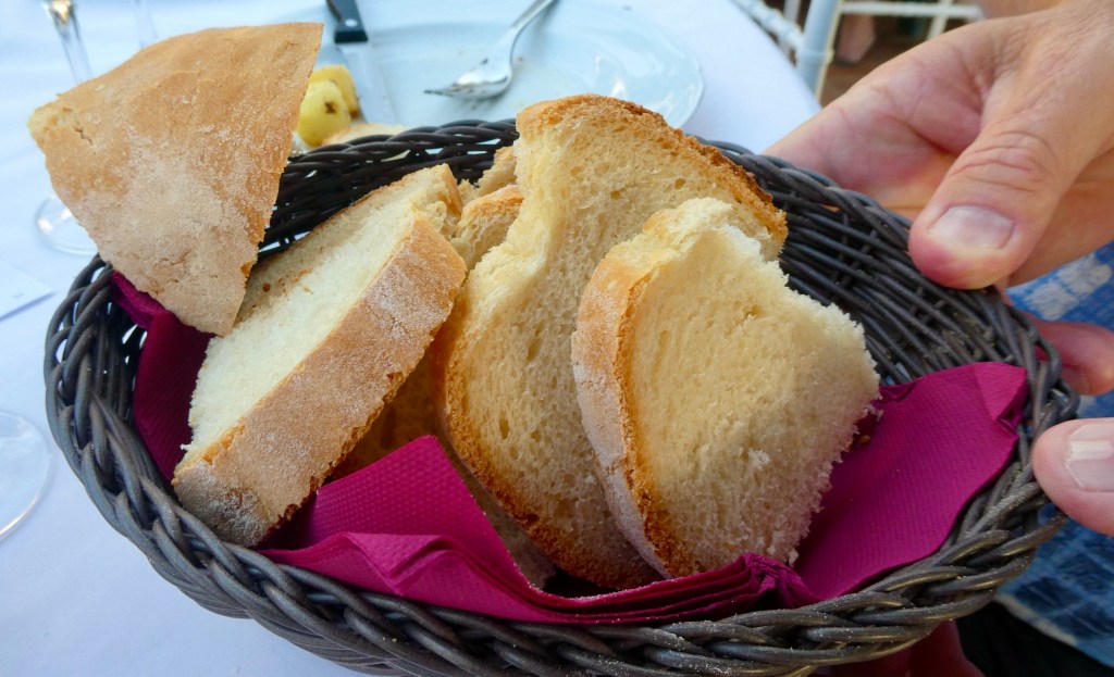 In Tuscany we were served bread made without salt. It tastes even worse than it sounds. The reasons why they make bread without salt vary from the city-state of Pisa denying Tuscans salt in the 1100s to the pope in Rome putting a high tax on salt in the 1500s. Those reasons, and others, may all be true, but the end result is that the Tuscany and Umbria regions of Italy have, over centuries, made bread without salt. We thought it was really bad and mostly passed it aside.