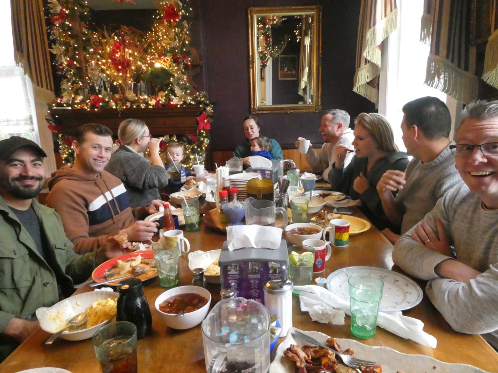 Monell’s serves family style so you walk in and are seated at large tables with whomever happened to walk in just before or after you.