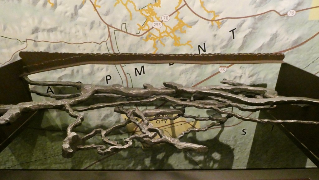 Mammoth Cave is impressive in its size, and interesting in its history, but it is not the prettiest cave we’ve seen – at least not the part we saw on this tour.