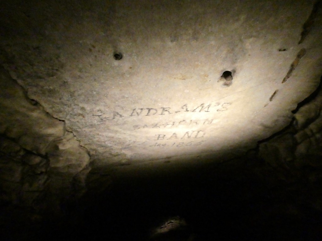 We saw writing on the walls and ceiling. Writings or carvings that were done before 1941 are considered historical graffiti. After 1941 the same activity became a federal offense.
