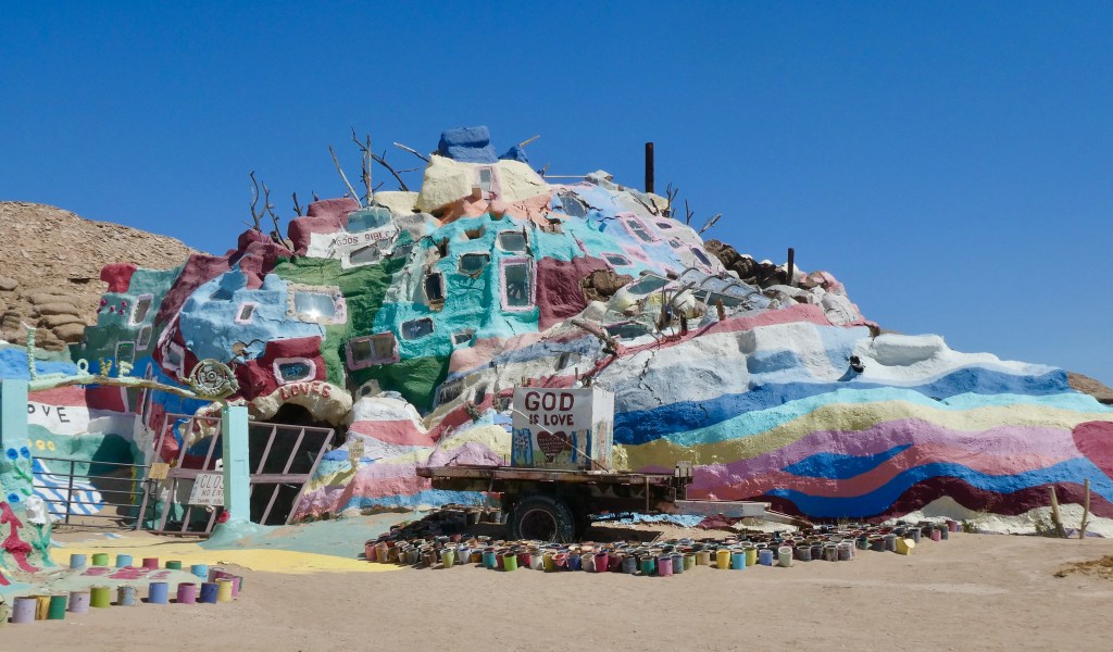 Salvation Mountain began as a temporary monument representing God’s love as perceived by Leonard Knight (1931 – 2014).