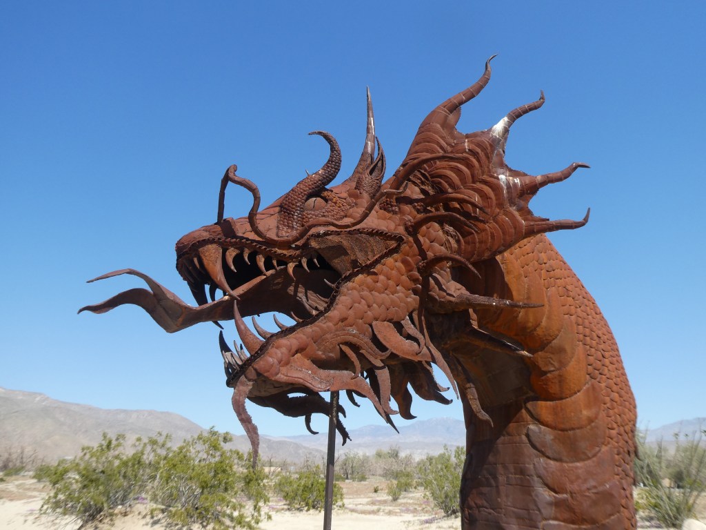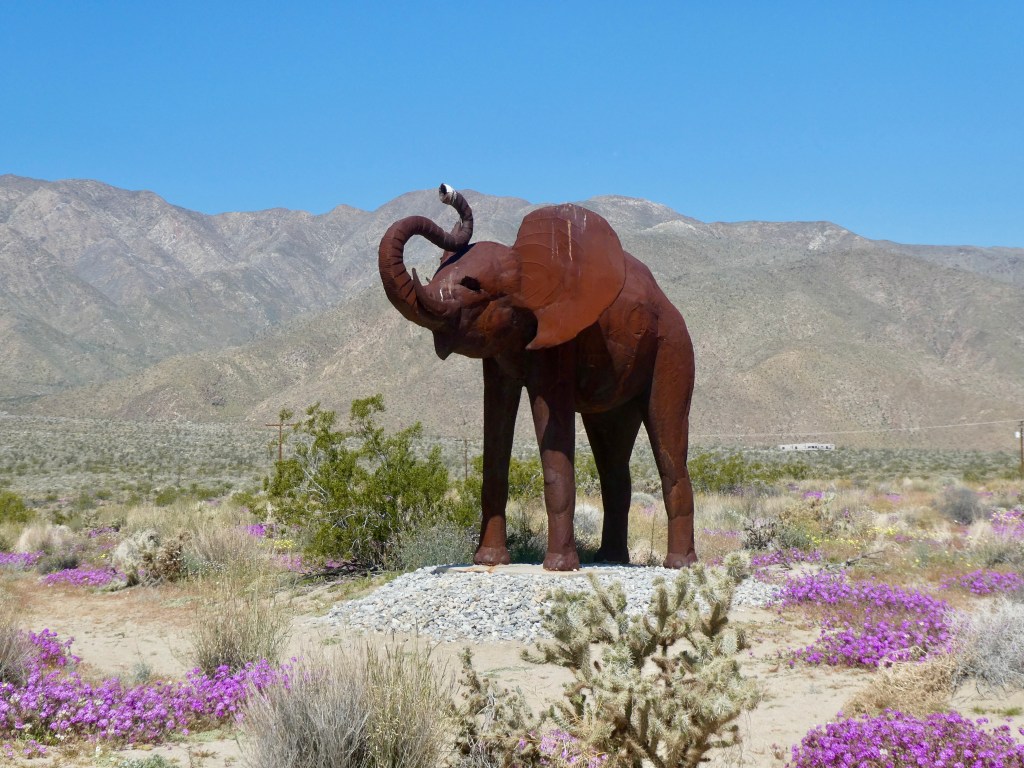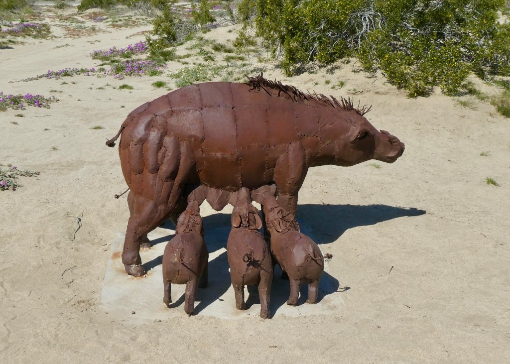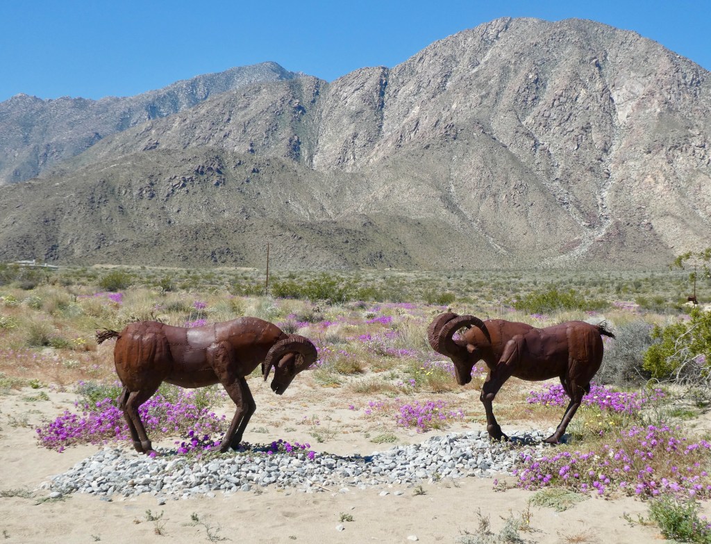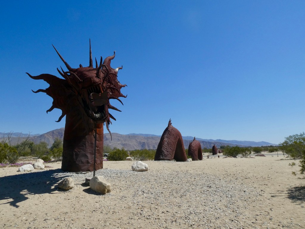 There are 130 sculptures in and around the town of Borrego Springs. The town is surrounded by the Anza-Borrego Desert State Park.