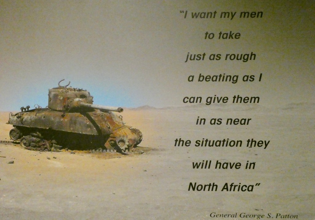 Patton must have been a good interview because the museum was full of his quotes. Patton speaking also got him into some trouble . At one point he was sent to desk duty for accusing a shell shocked soldier of malingering.