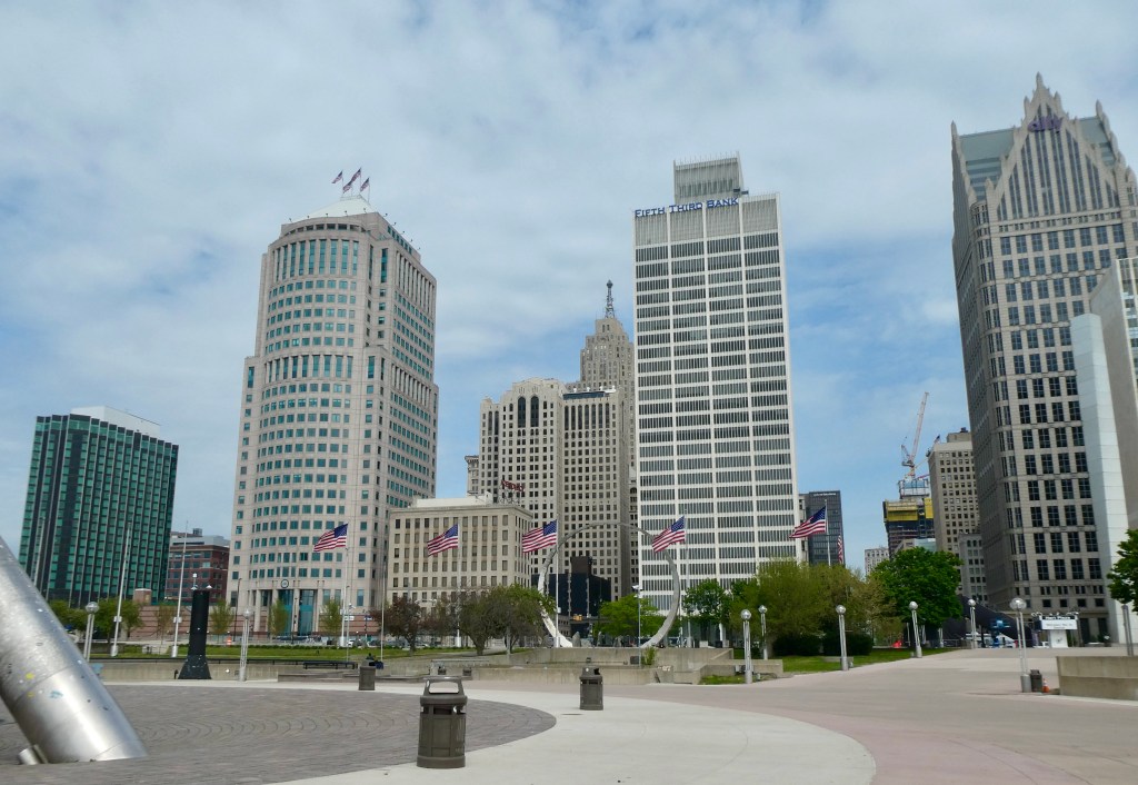 We could see the Renaissance Center – the brainchild of Henry Ford II. Consisting of several large buildings forming a city within a city, the two most notable owners are the Westin Hotel and the World Headquarters for General Motors.