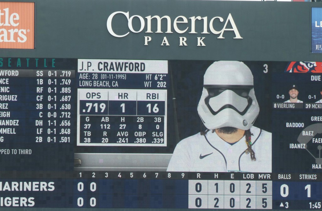 Once inside we found the theme for the day was Star Wars! There were a variety of activities but we especially enjoyed the way they made our Mariners look like Storm Troopers on the big screen!