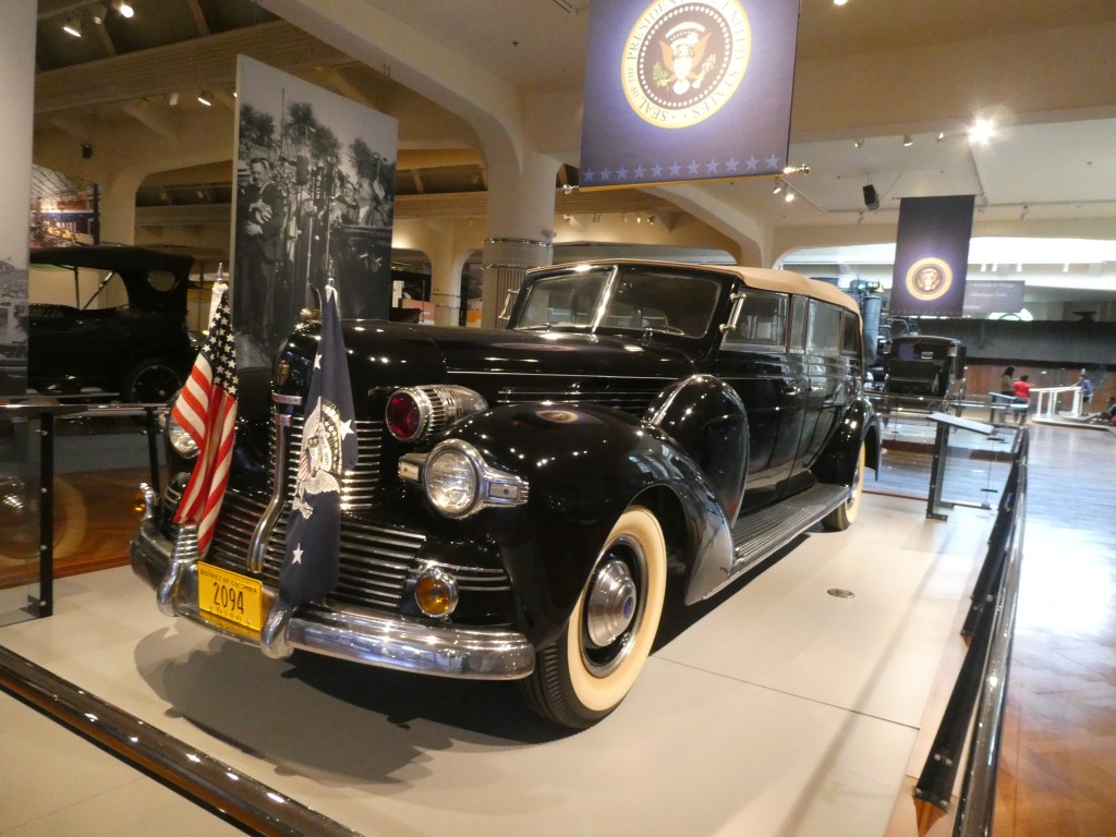 This 1939 Lincoln was the first car ever built purposefully for use by a president – in this case for President Franklin D. Roosevelt. It was nicknamed the “Sunshine Special” because he loved to ride in it with the top down. It had extra wide running boards and rear hinges on the back seat doors to make it easier to get FDR in and out of the car.  After the Japanese attack on Pearl Harbor in 1941 the car was returned to the factory where it was equipped with armor plate and bullet-resistant tires and gas tank. The “Sunshine Special” was also used by President Harry Truman and retired in 1950.