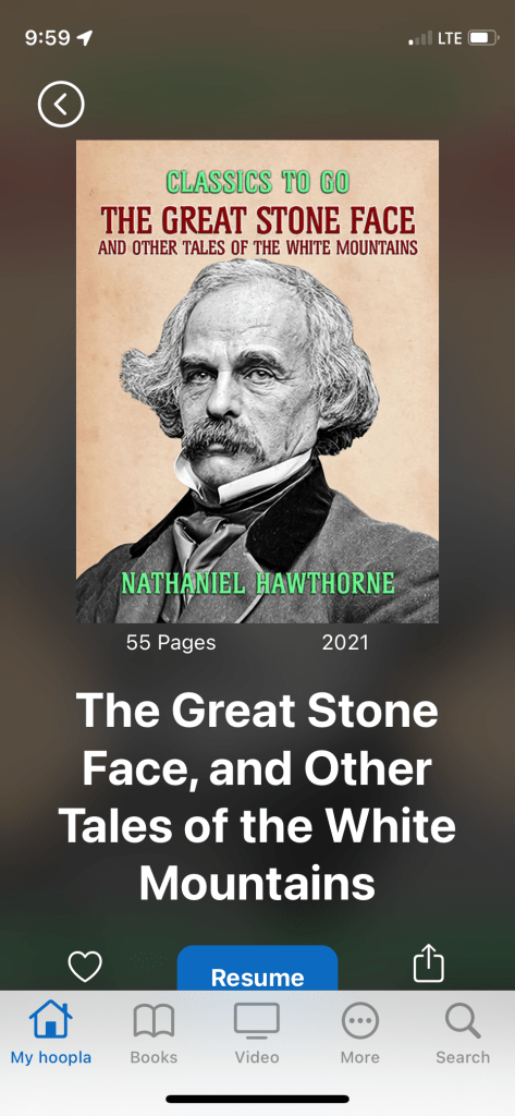 The task of reading The Great Stone Face was accomplished, but not enjoyed. I’m just not a Hawthorne fan.
