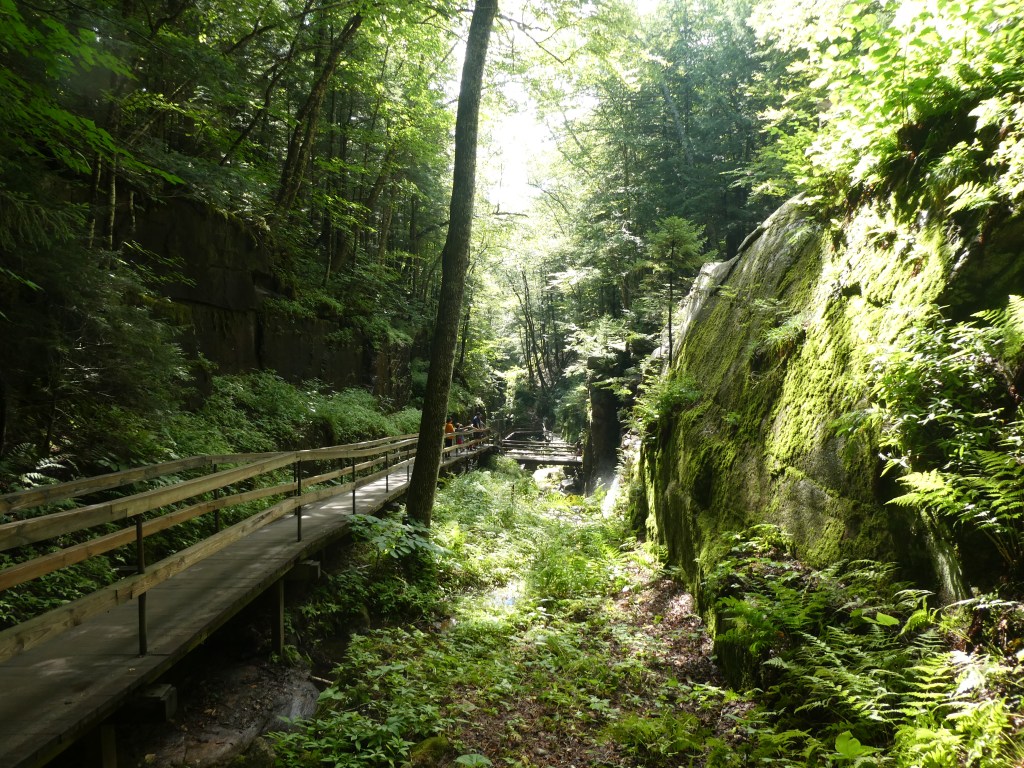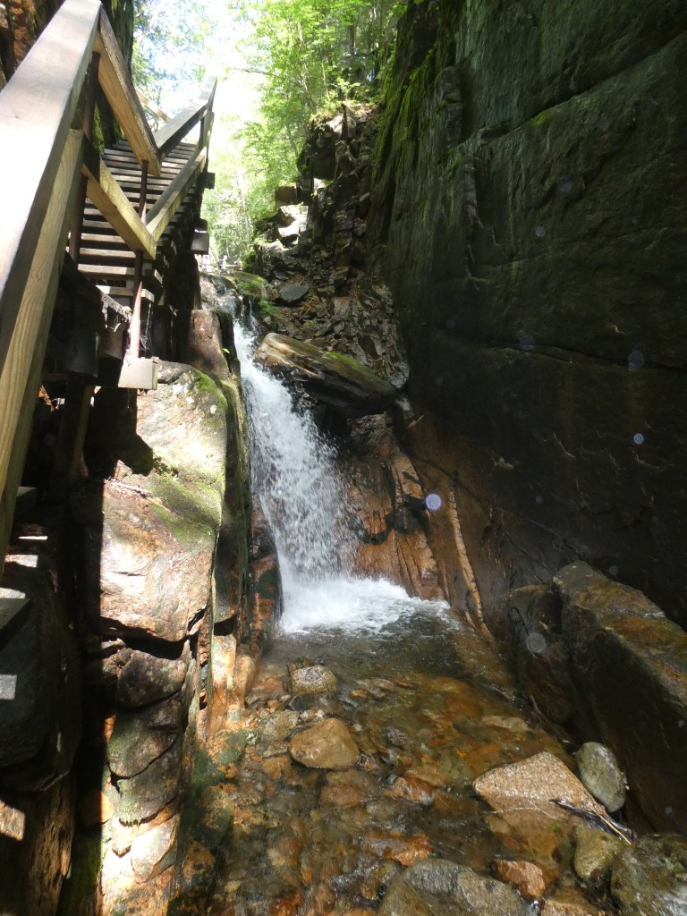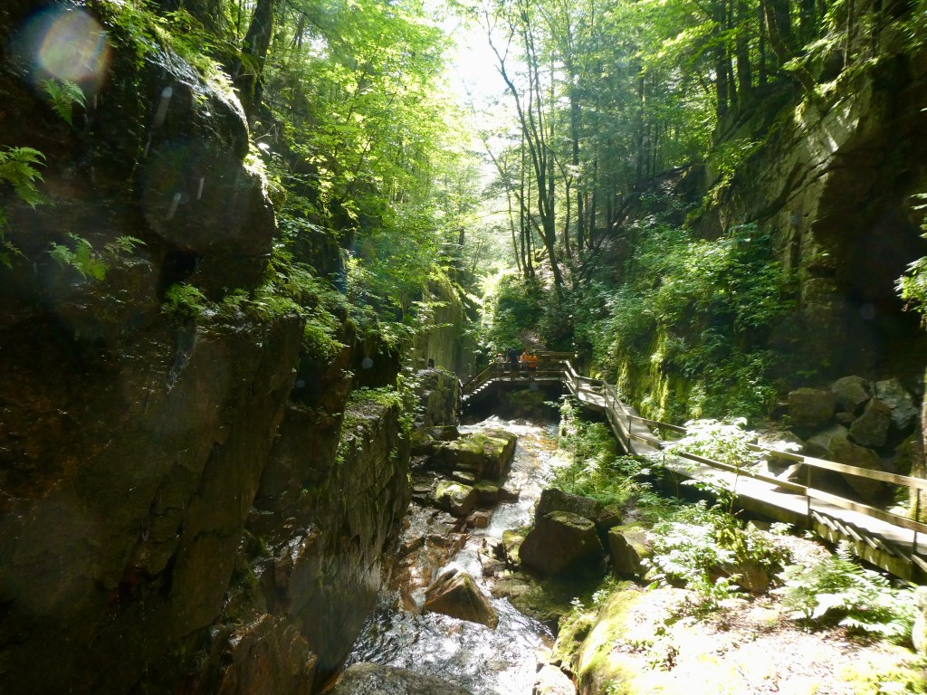 After a few days, we moved into New Hampshire, specifically Franconia Notch State Park. It is the home of Flume Gorge! The flume was formed by molten lava pushing up through cracks in ancient granite.  The lava rock was worn away over the ages leaving the flume.