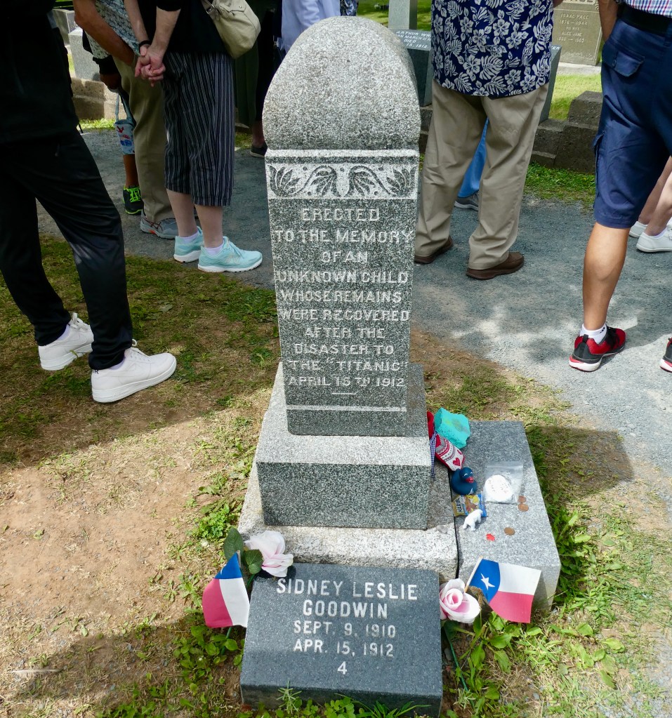 This child’s stone was more elaborate because the Mackay-Bennett rescue boat crew paid for it to be so.  The small child was the fourth victim recovered.