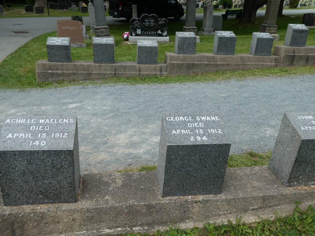 The White Star line paid for simple headstones. Each includes a number representing the order in which the bodies were recovered.