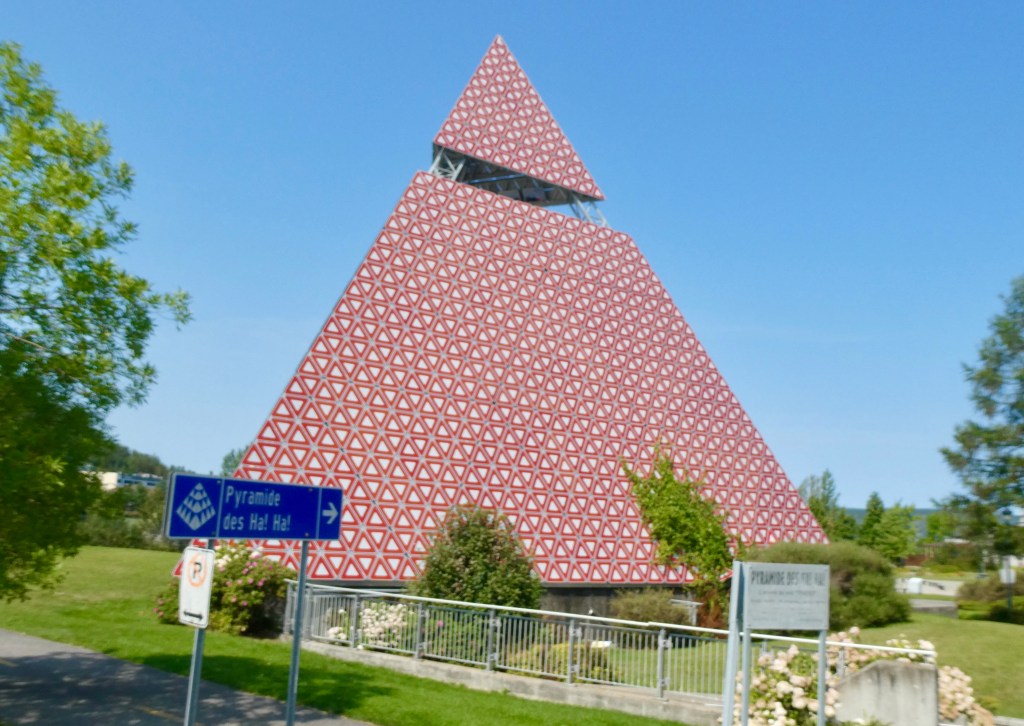 The Ha! Ha! Pyramid was built as a monument to commemorate the Saguenay flood in 1996. The pyramid, named after the nearby river, originated as a form of therapy to help residents recover. It is made of 3,000 yield signs because the French word to yield is very similar to the word to help each other.