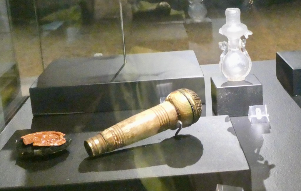 This glass jar was in 404 pieces and would have held oils. It took 12 years to rebuild.
