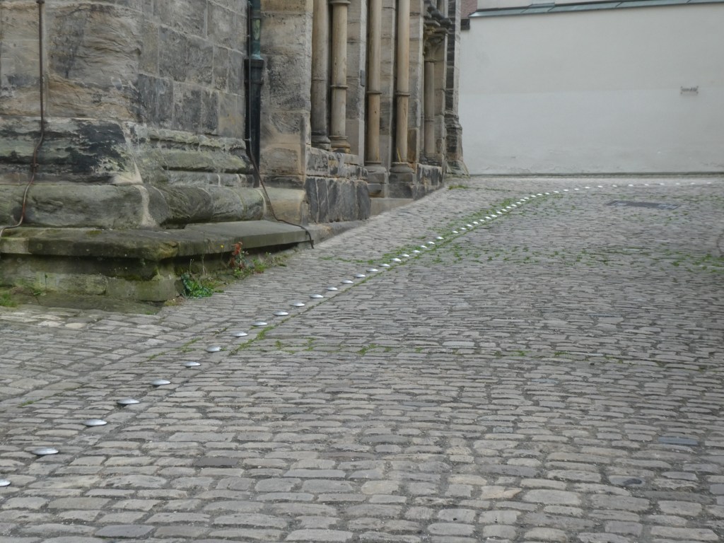 To keep the cathedral area more scenic, metal dots show vehicle lanes.