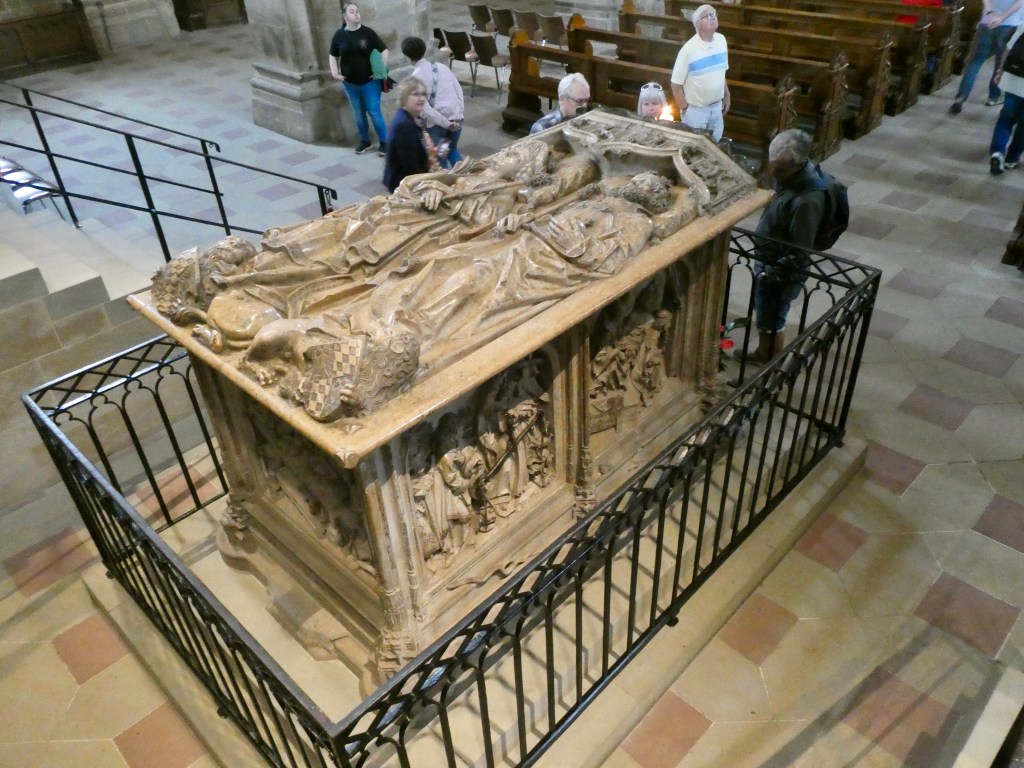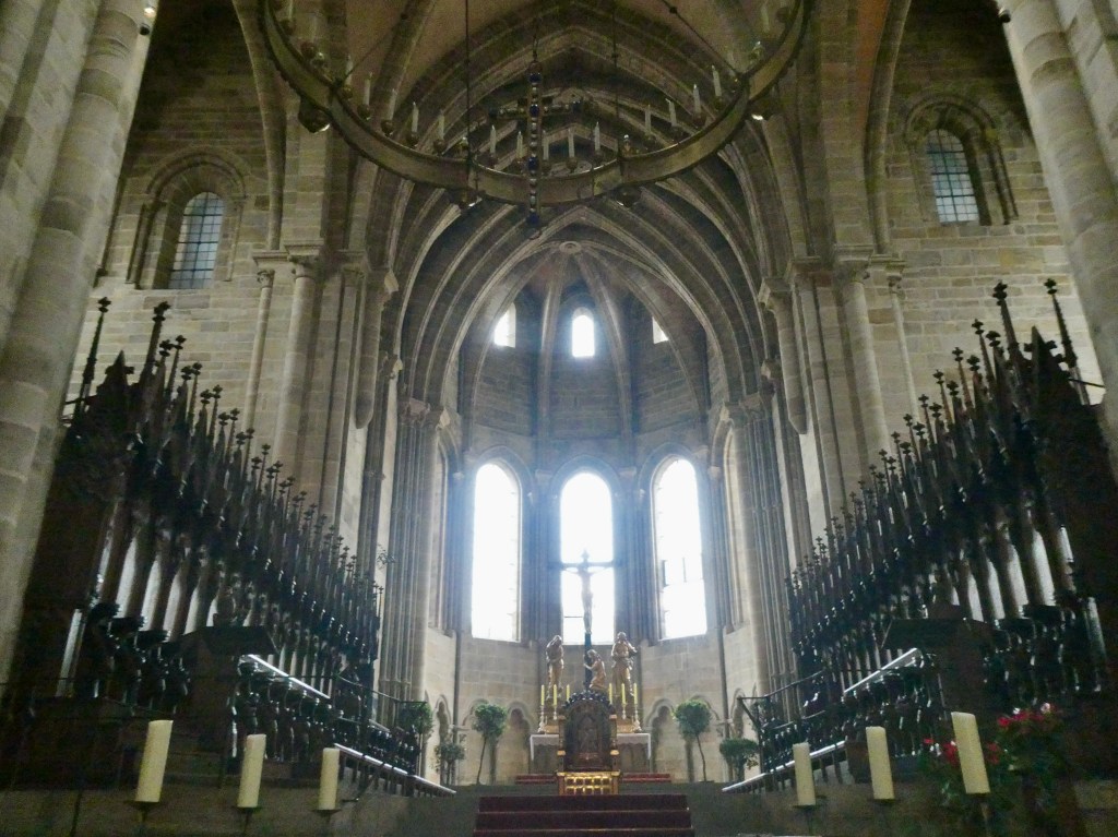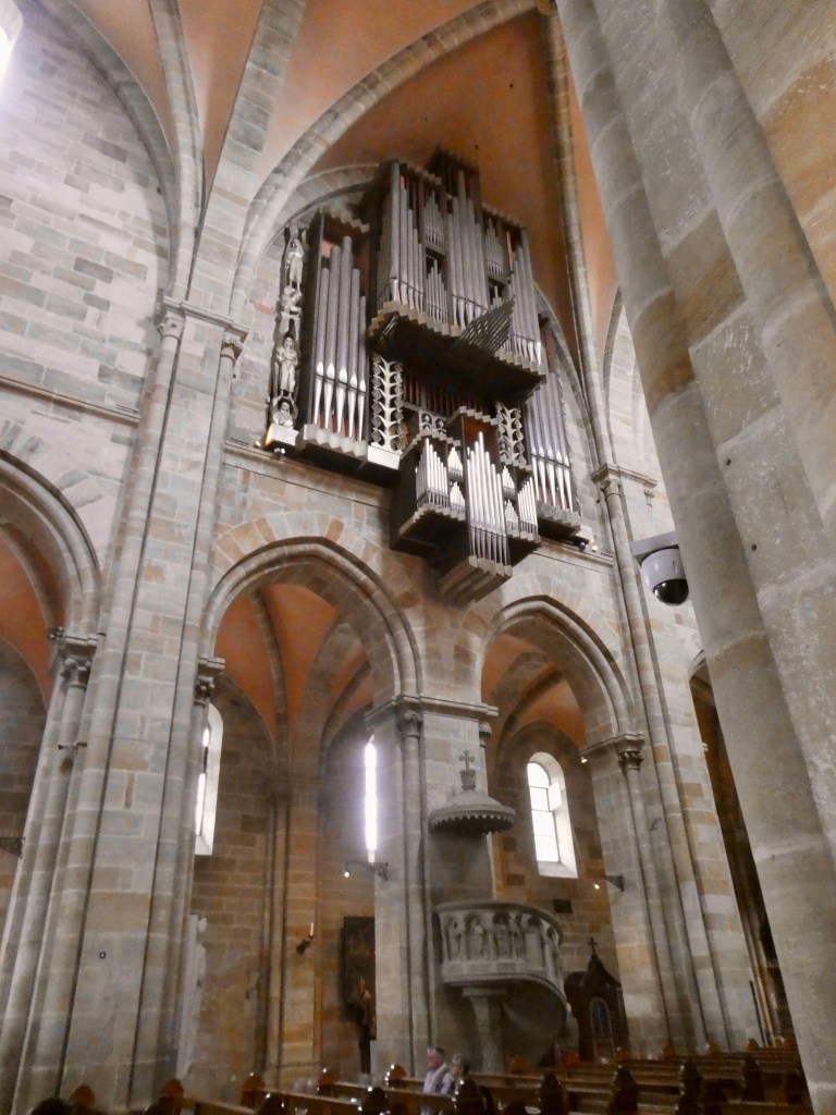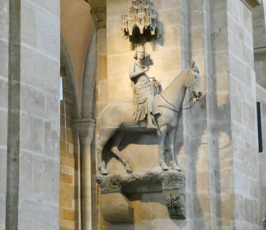 Inside the cathedral, we were able to see The Bamberg horseman. The horsemen is visible on a variety of Bamberg products. The city residents don’t know who he was but celebrate him anyway. He is wearing a king’s crown – not an emperor’s crown.