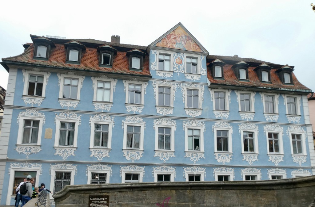 Our guide explained that the houses on the Regnitz River were for poor fishermen during medieval times. The water was filthy because of the nearby slaughterhouse (the building on the right) where waste was dumped into the river.