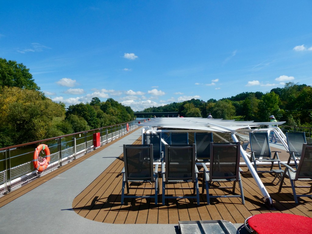 What an interesting ship! You can tell that it was specifically built for those rivers with its low profile and collapsible observation deck. I wonder how many bridges you’ll pass under on your cruise? Also very cool that your balcony is just above the level of the water. Thanks for sharing your journey.