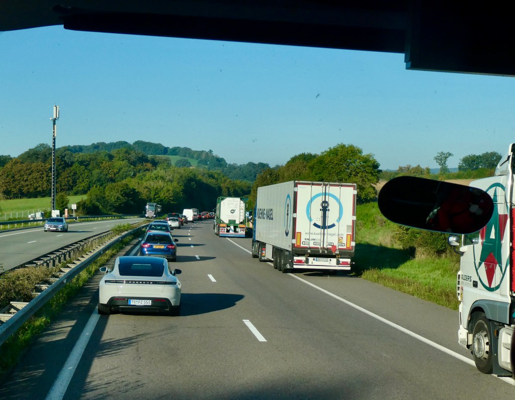 Highway traffic along our route was dense because a lot of workers from France and Germany work in Luxembourg as the salaries are higher. The general rule of the road is to leave the center open for emergency vehicles.