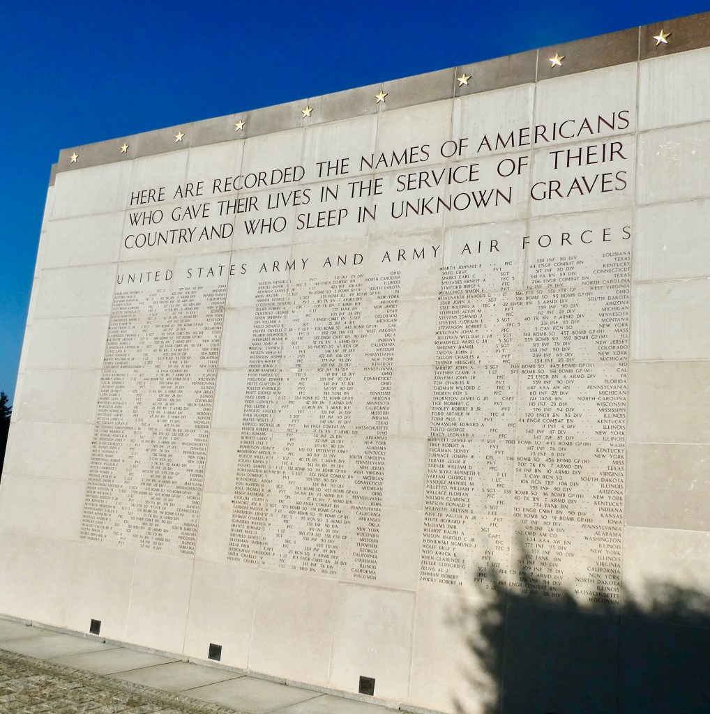 When we were at the American Military Cemetery near Florence, Italy last year we understood that there were two such cemeteries, that one and a second in Luxembourg. In fact, there are 26 American Cemeteries and 32 memorials, monuments and markers in 17 countries.