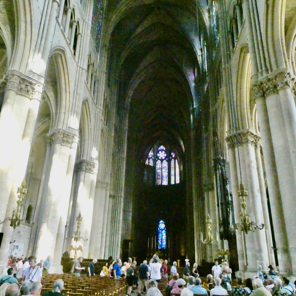 Our guide started telling us about Reims. “Reims is the capital city of the Champagnia region of France. Mimosas don’t exist! If France still had the guillotine, that would be a capital offense.”