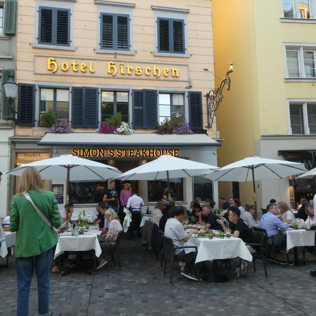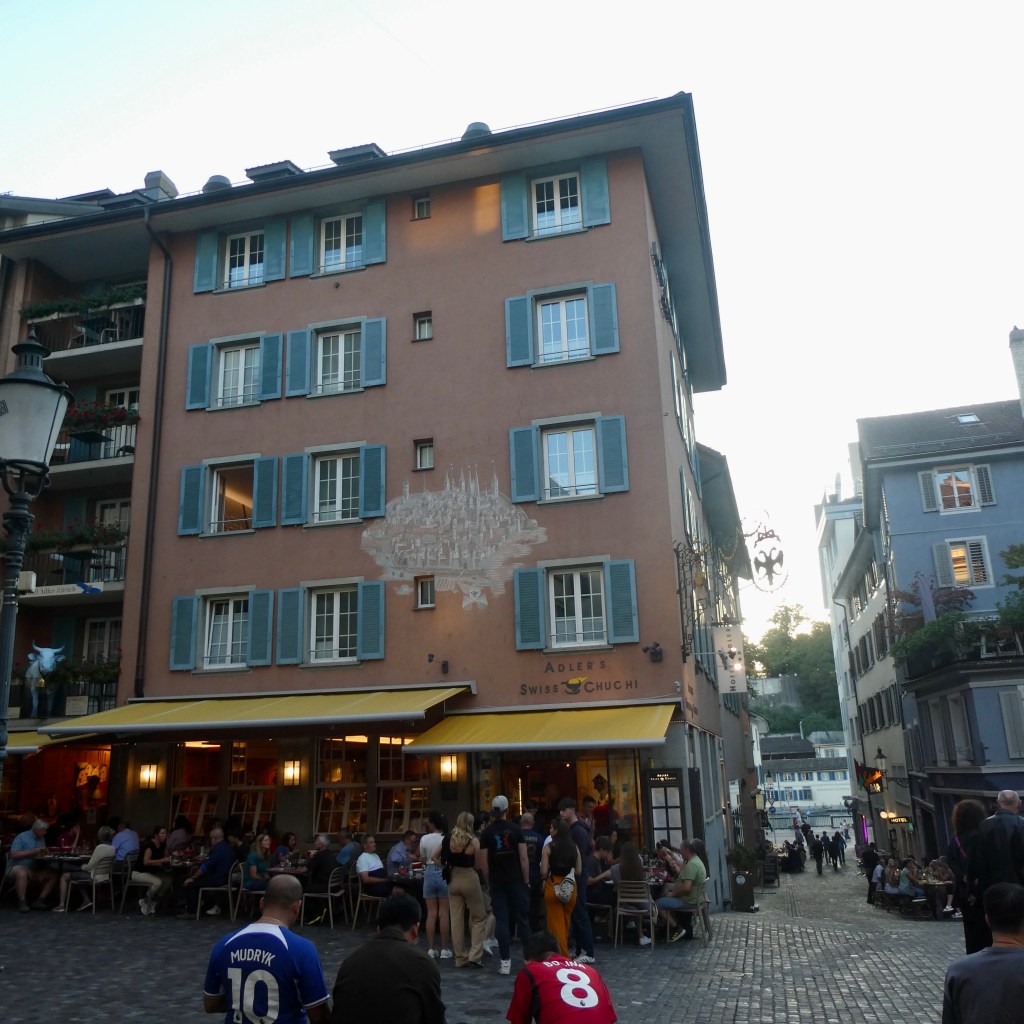 We often saw people looking at the mural of old Zurich on the hotel exterior wall.  It felt a little odd at first because our room was close to the mural so it seemed like they were looking at our window!