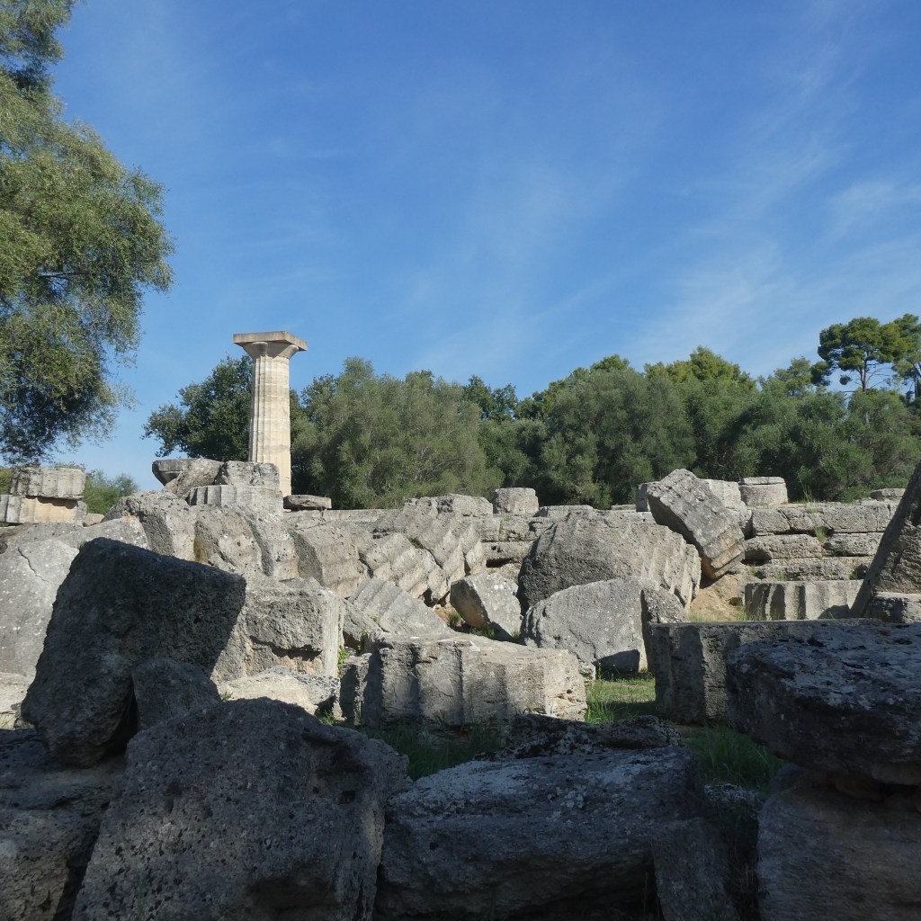 All Greek males were supposed to go to the Temple of Zeus once in their lifetime. These rocks are from that ancient temple. Many combined their visit with the Olympic games.