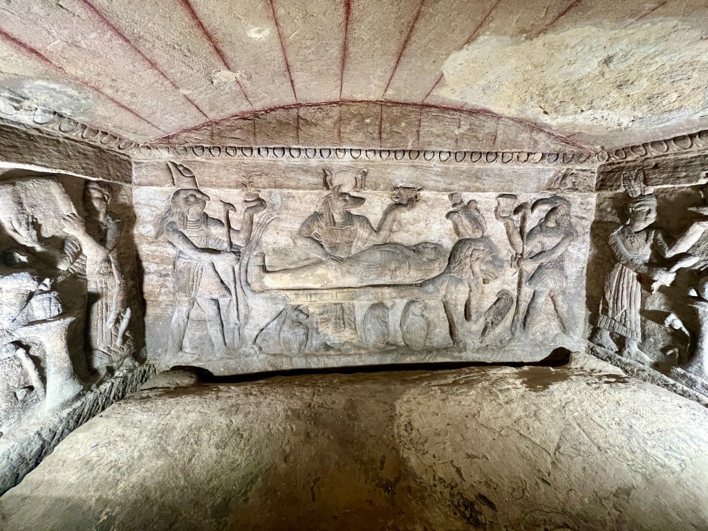 The catacombs consist of three tiers of tombs and chambers cut into the bedrock. It was constructed in the second century A.D. as a single-family crypt and expanded.