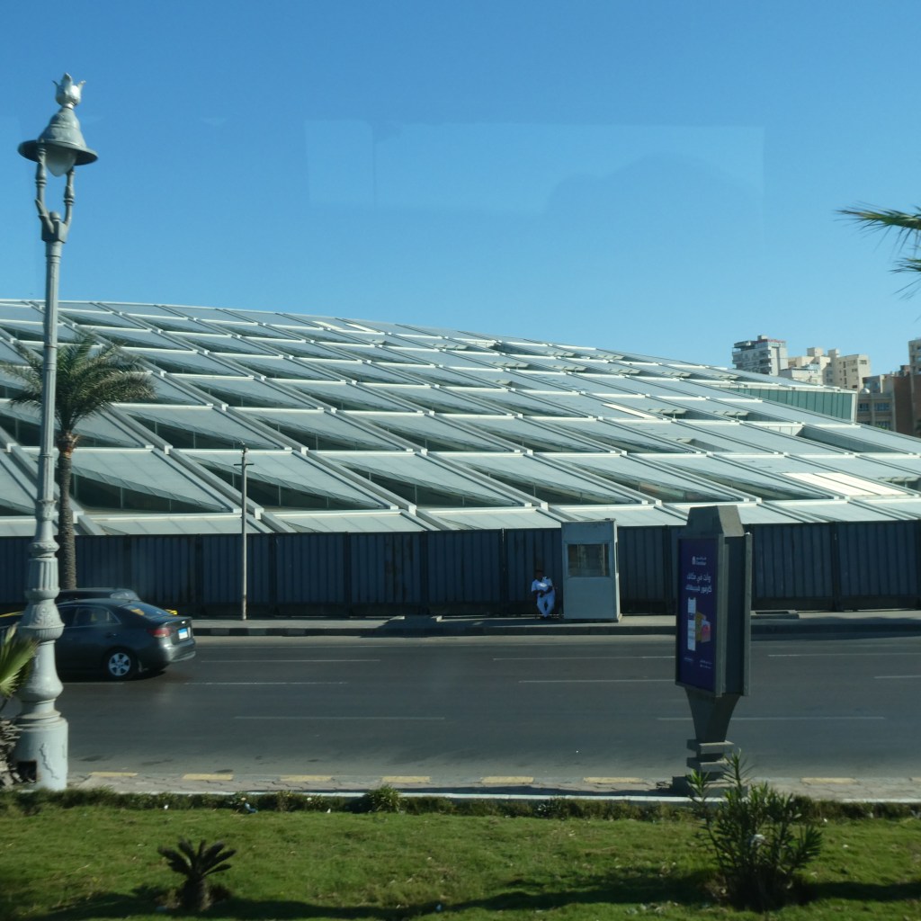 We drove past Pompey’s Pillar at the Temple of Serapis. It is an 88 foot tall, 7 foot wide column of polished Aswan Rose granite. The temple was once one of ancient Alexandria‘s most important buildings. Despite its name, the pillar was erected to honor Diocletian in the fourth century A.D.