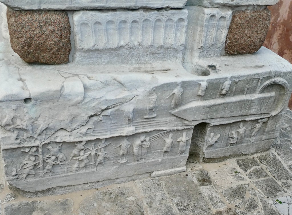 The base shows the process of erecting the obelisk. It took 55 years to accomplish the task.