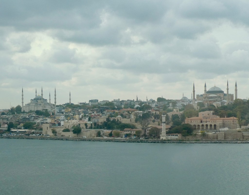 The Blue Mosque is on the left and St. Sophia is on the right. It is a unique (to us) landscape.