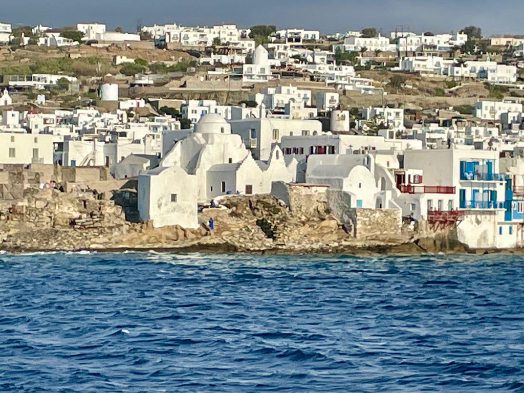 We motored to Mykanos and the sun was out. It was lovely but, unfortunately, I was still very wet and cold. The choice was to find a warm, dry sweatshirt or go back to the ship.