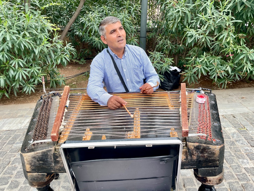 We met our guide and started the long gradual walk up the hill. Along the way we saw musicians and artists. We thought this was an interesting instrument.