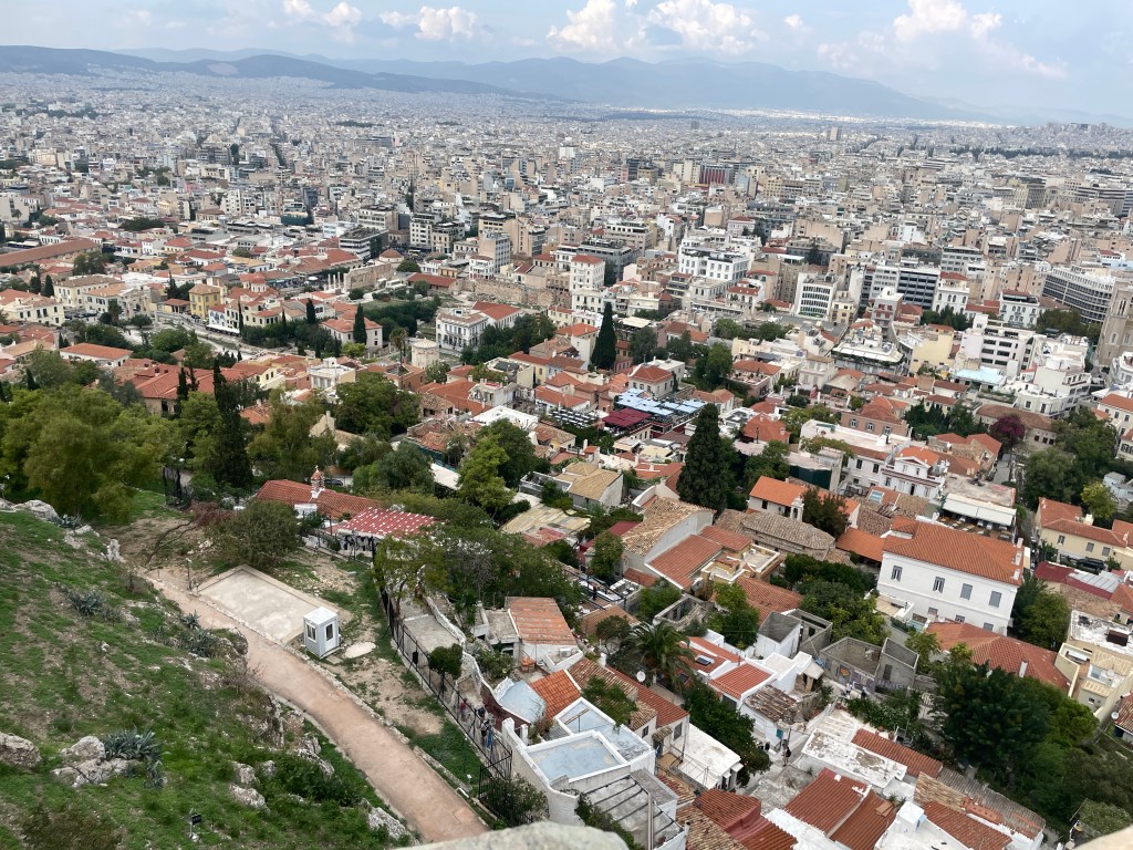 We had seen the Acropolis from Athens, and now we could see Athens from the Acropolis.