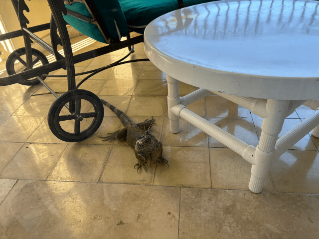 When we went down for breakfast about ten minutes later, it was no where to be found.  That made me hopeful for its survival.  It isn’t like iguanas haven’t already survived since the beginning of time.