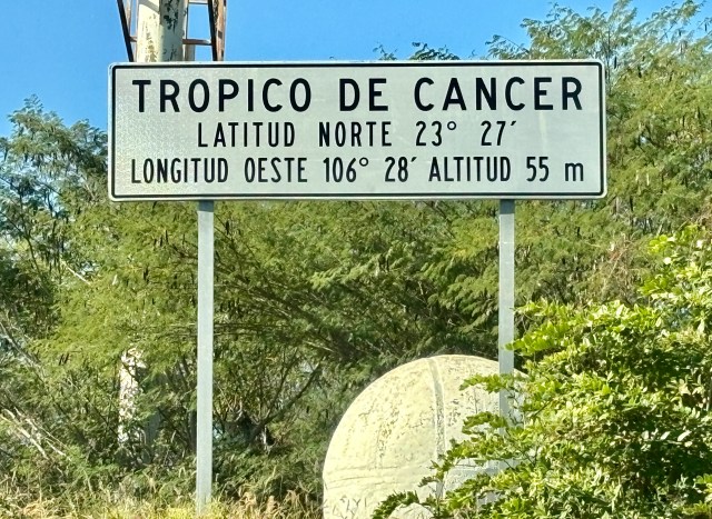 We passed a sign indicating the Tropico de Cancer.  This latitude is the same that goes through the Hawaiian Islands – but the landscape is so different.