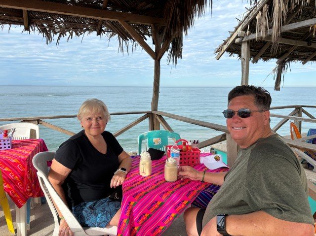 We ate breakfast a couple of times at a cafe called Surf’s Up.  It is about a half mile walk down the beach from our resort.