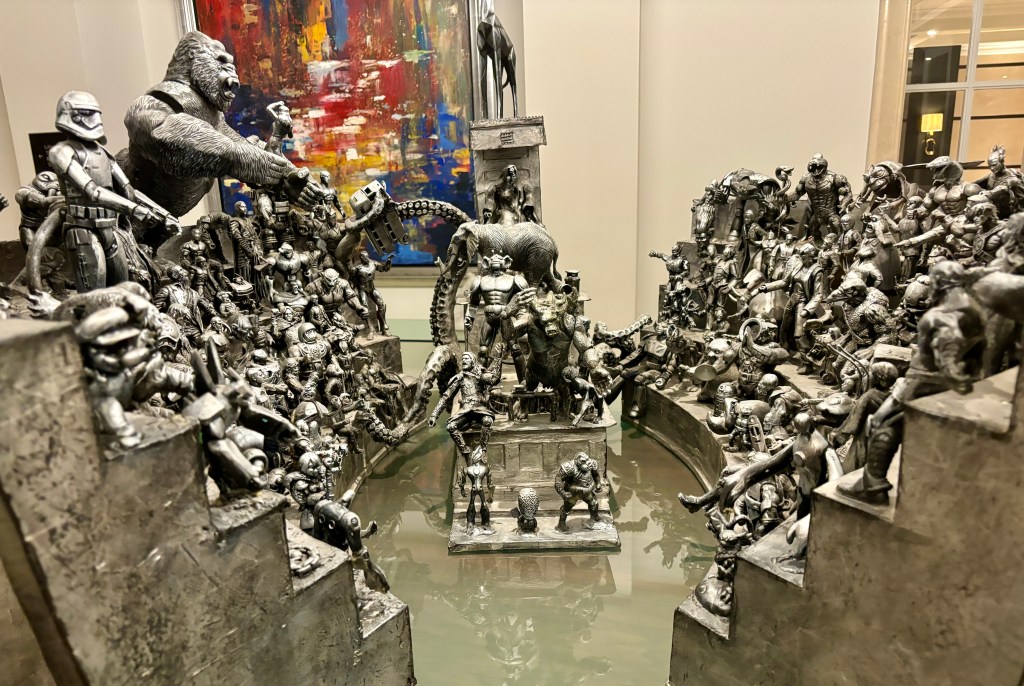 The hotel has a world class art collection. ”The House Always Wins” shows a popular culture take on the House of Commons.