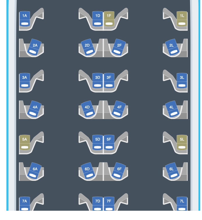 Our pods, 6D and 6F, were in the middle of the plane and angled away from each other.