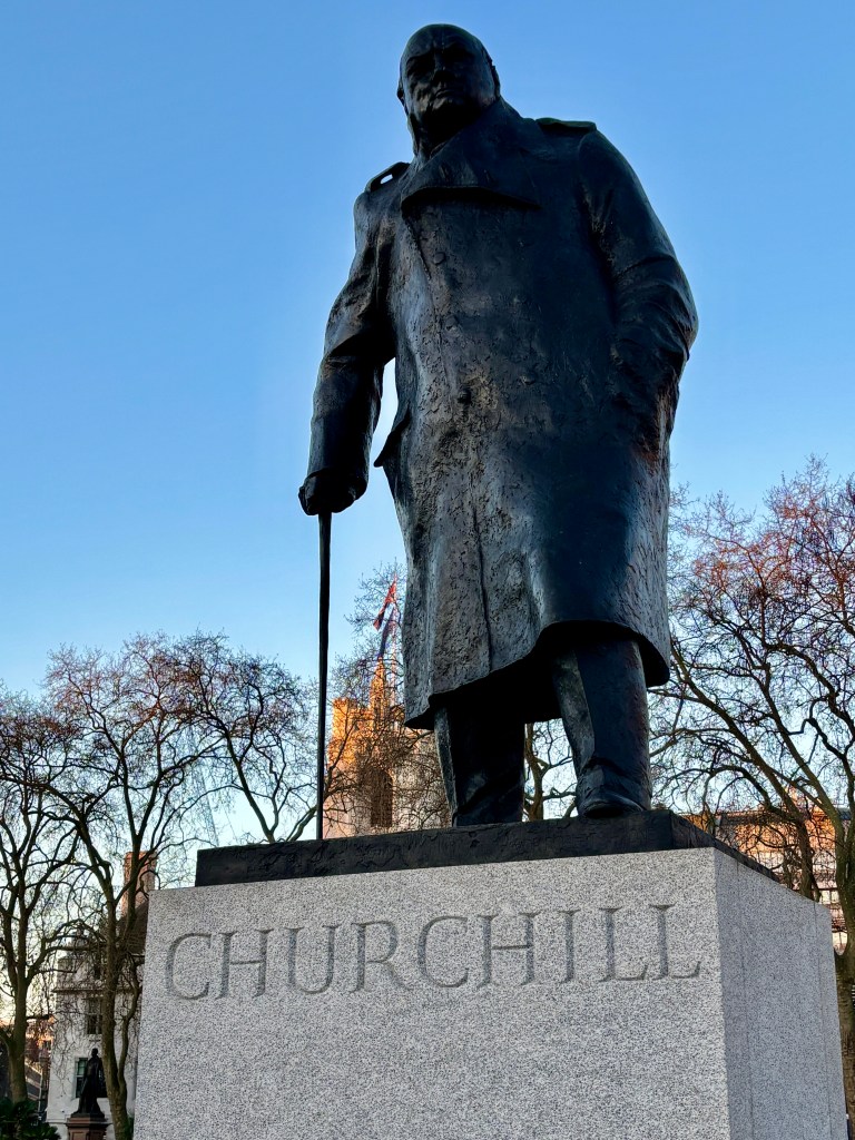 We entered Parliament Square Garden, and were not surprised to see Winston Churchill. A guide later commented on this statue that he looks grumpy, because he always looked grumpy. Of course he was guiding the country during some trying times.